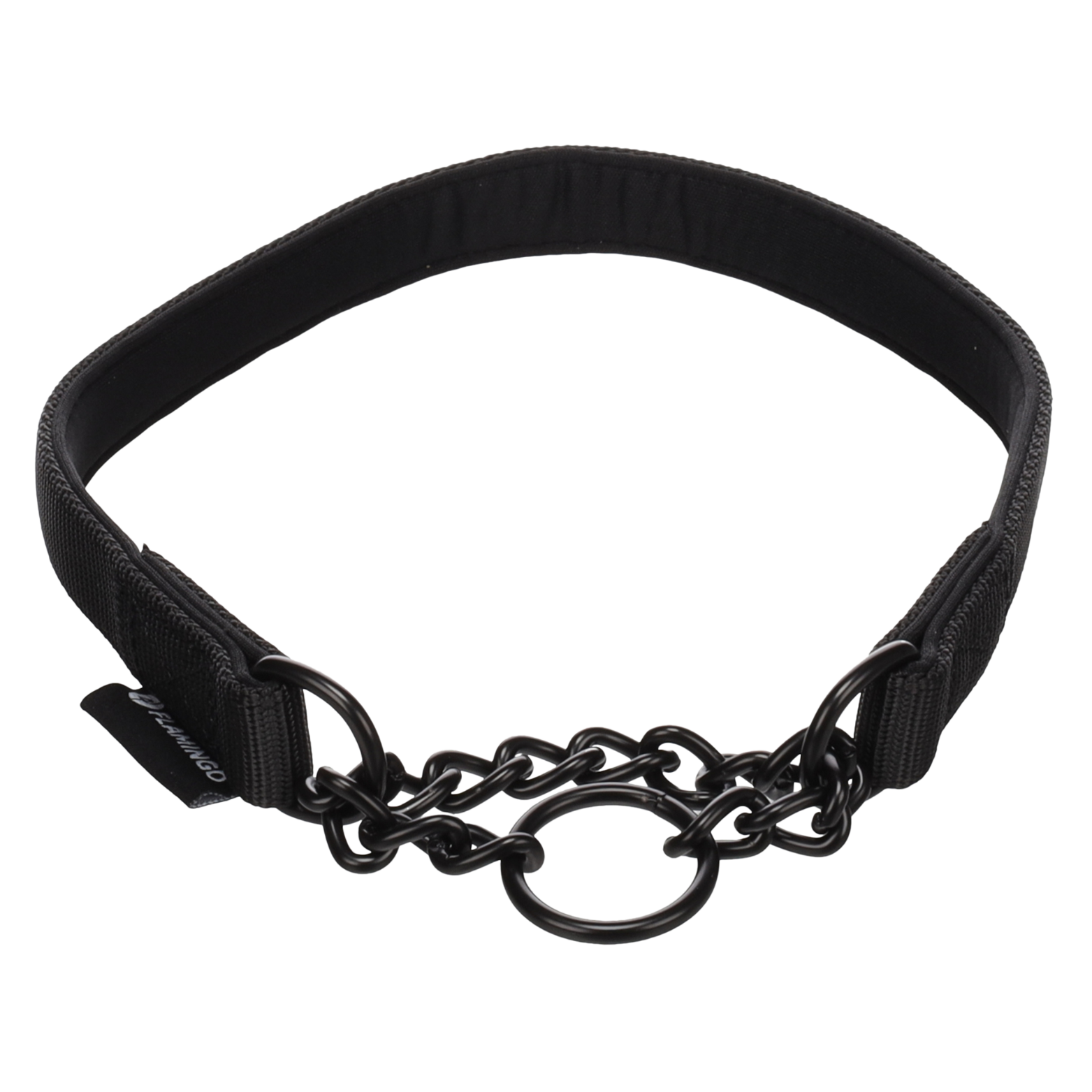 Dieses Halsband vereint Stärke mit Weichheit: Die Metallkette bietet optimale Kontrolle, während das Futter aus Nylon und Neopren für eine bequeme Passform sorgt. Perfekt für alltägliche Spaziergänge mit einem stylischen Touch.