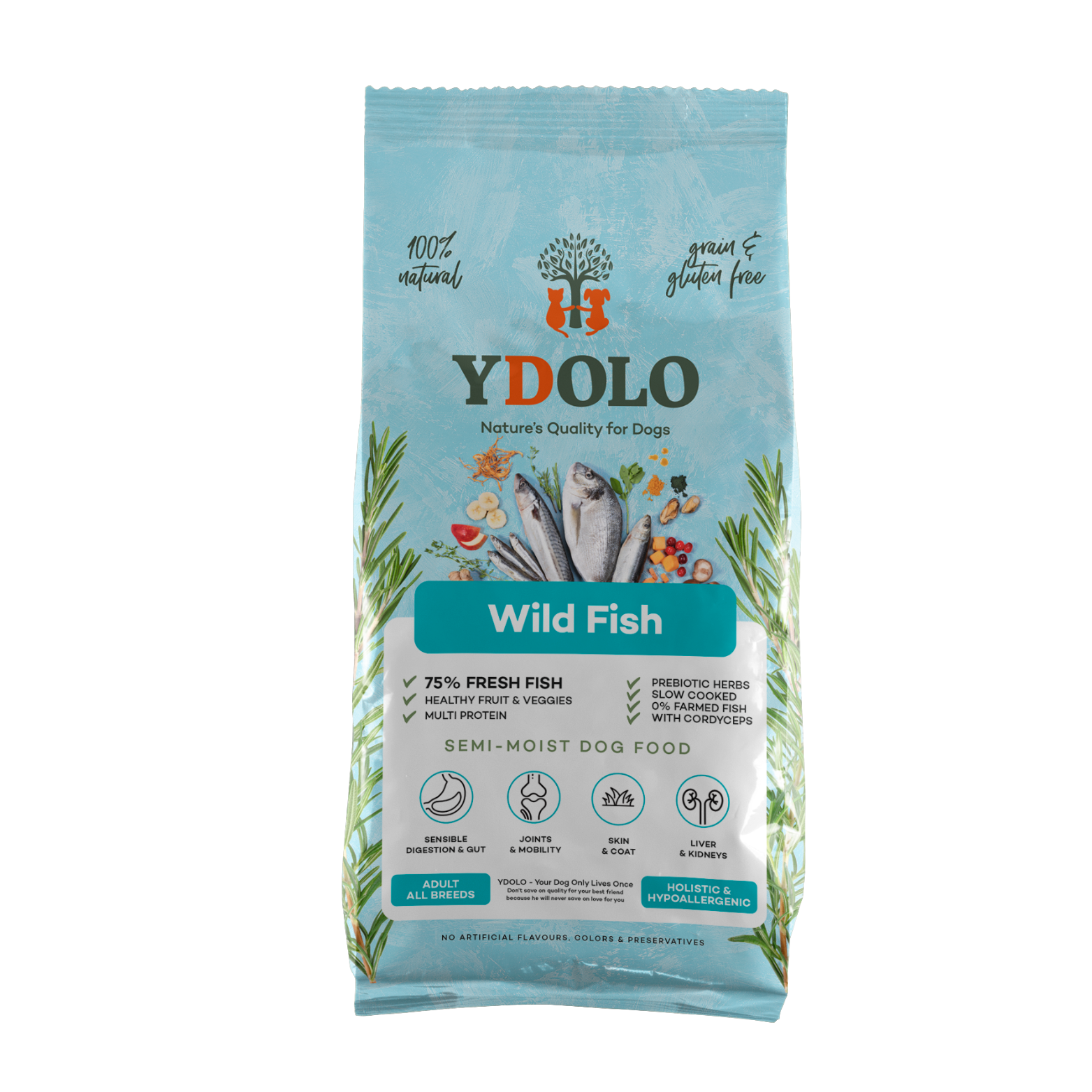 YDOLO Wild Fish ist eine köstliche und gesunde Wahl für Hunde, die von der Unterstützung ihrer Gelenke, Haut, ihres Fells und ihrer empfindlichen Verdauung profitieren. Dieses halbfeuchte Trockenfutter, das zu 75 % aus Wildfangfisch besteht, ist vollgepackt mit essentiellen Nährstoffen – perfekt für empfindliche Esser und anspruchsvolle Besitzer.