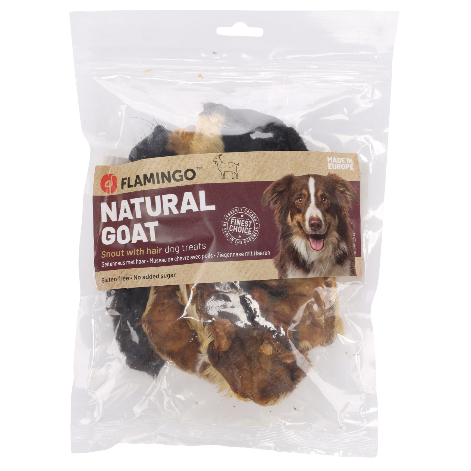 Trakteer je hond op een 100% natuurlijke snack met onze geitenneus met haar! Deze glutenvrije traktatie bevat geen toegevoegde suikers, kleurstoffen of bewaarmiddelen en is perfect als gezonde beloning. Het haar helpt bij de gebitsreiniging en ondersteunt de spijsvertering. Geproduceerd in Europa voor gegarandeerde kwaliteit.