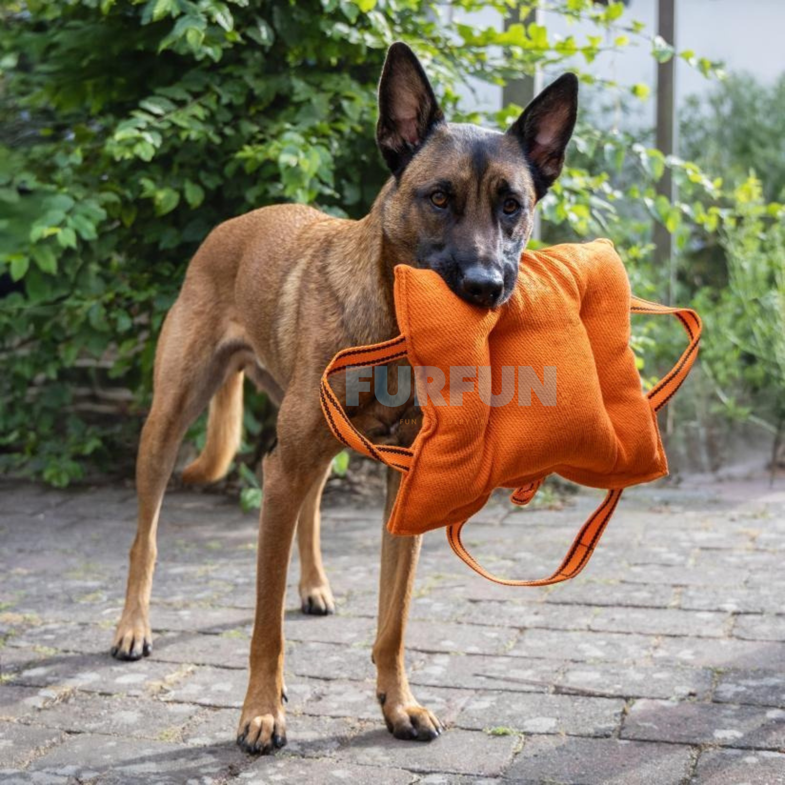 Dit bijtkussen is voorzien van een zachte vulling en gemaakt van duurzaam Ringo-materiaal. Met een groot formaat van 40x30 cm en handvatten aan de boven- en zijkant, wat zorgt voor een comfortabele grip tijdens trekspel of training. Daarnaast heeft het een kleine lus, zodat het ook kan worden opgehangen voor muurklimmen of hoge sprongen.