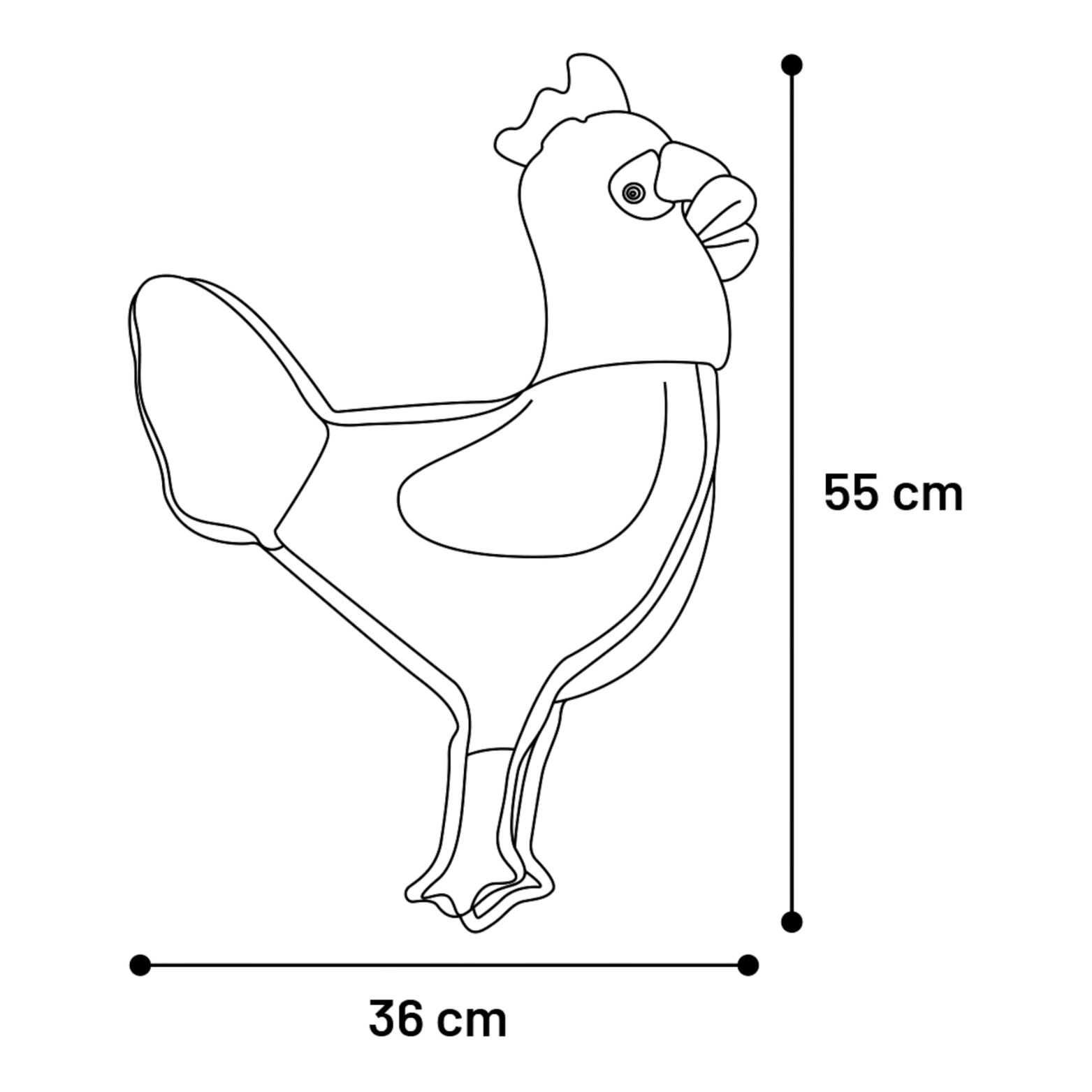 Hoewel deze haan zeer stevig is, is geen enkele knuffel volledig onverwoestbaar. Laat je hond nooit zonder toezicht spelen en verwijder de knuffel bij tekenen van schade.